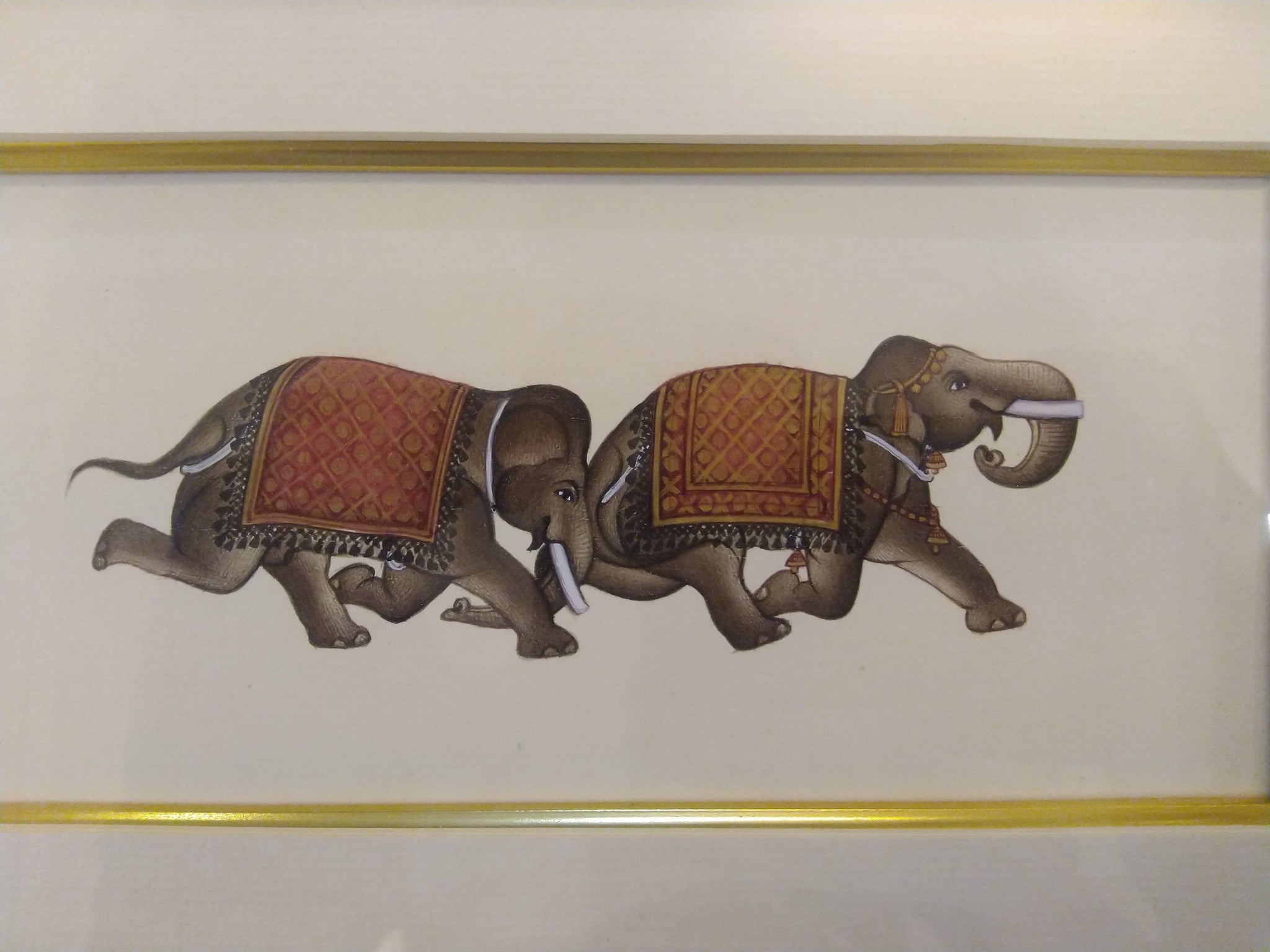 Wild Animal Elephant Indian Miniature Painting With Golden Frame Artudaipur